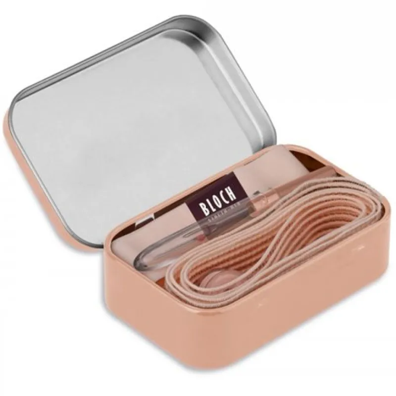 Metal æske medi balletfarve med Bloch logo. Æsken indeholder: