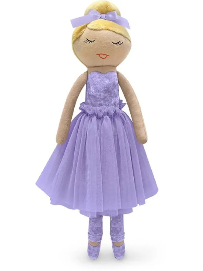 Fin lille ballerina dukke med lilla tutu og balletsko. Ideel gaveidé til enhver danseelsker.