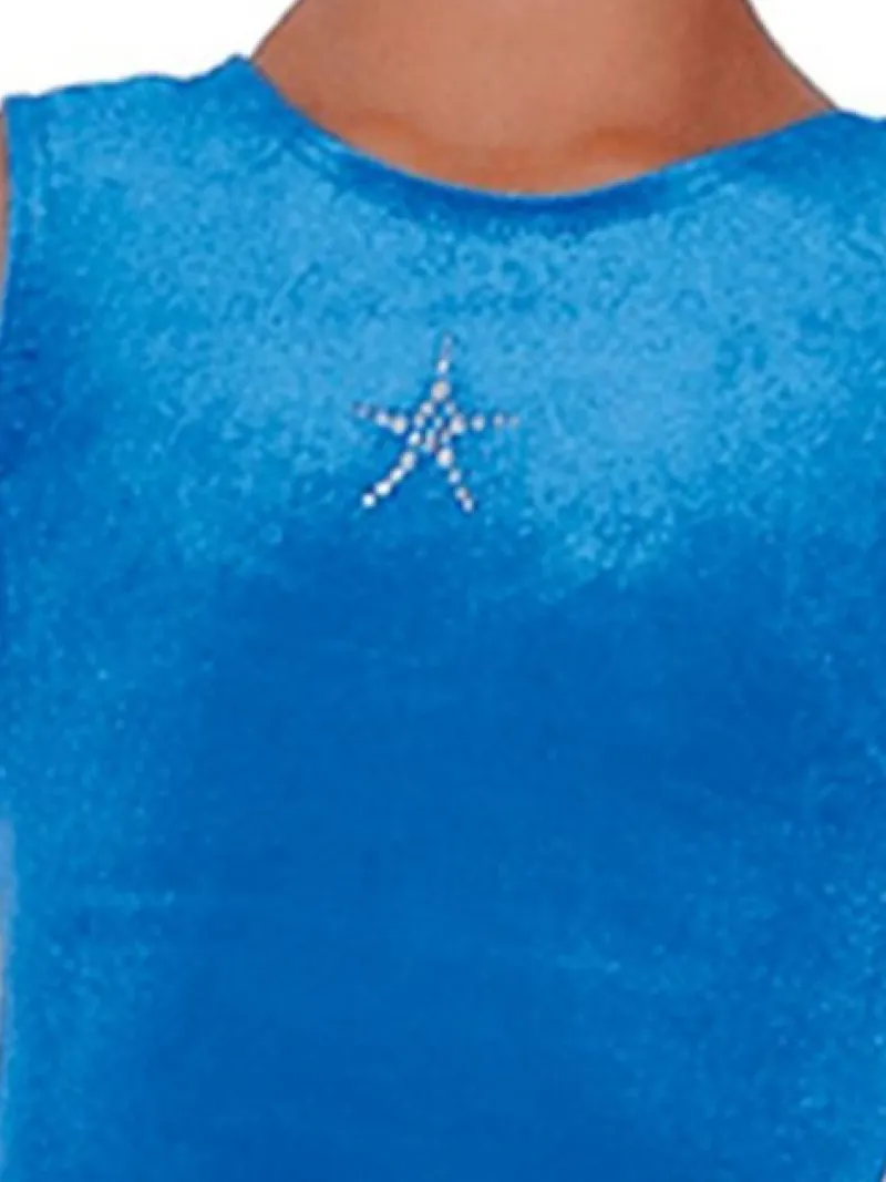 The zone kongeblå ærmeløs gymnastikdragt til pigerStjerne motiv af sølv rhinsten på frontenLækker blød velour str…