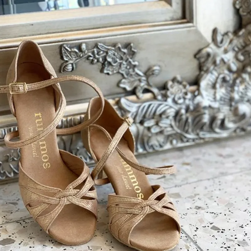 Rummos dansesko til damer – lys ton i ton beige og guld brokade. Bestseller! Fantastisk smuk design.