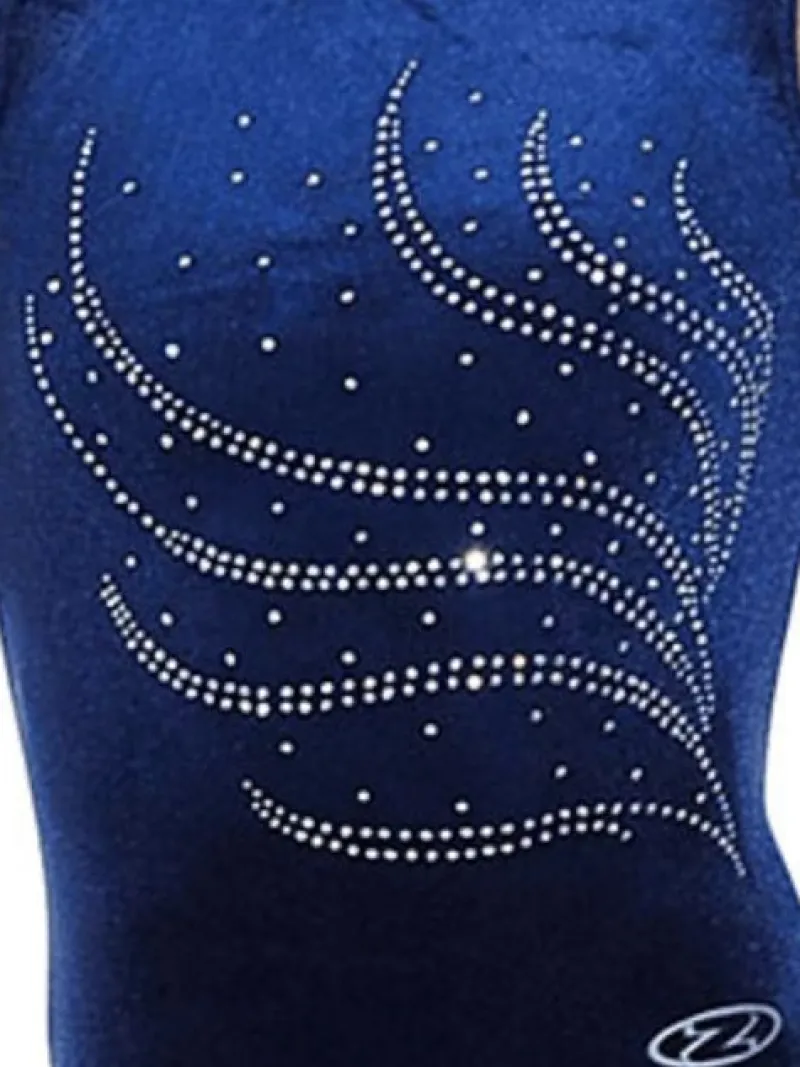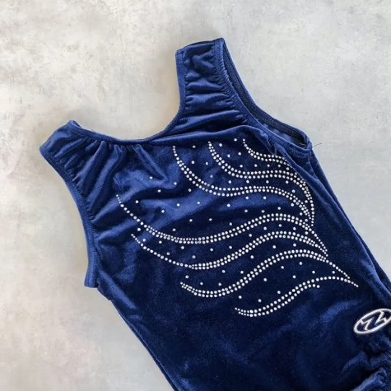 The zone flot mørkeblå gymnastikdragt til pigerMasser af sølv rhinsten på frontenLækker blød velour. God kvalitet …