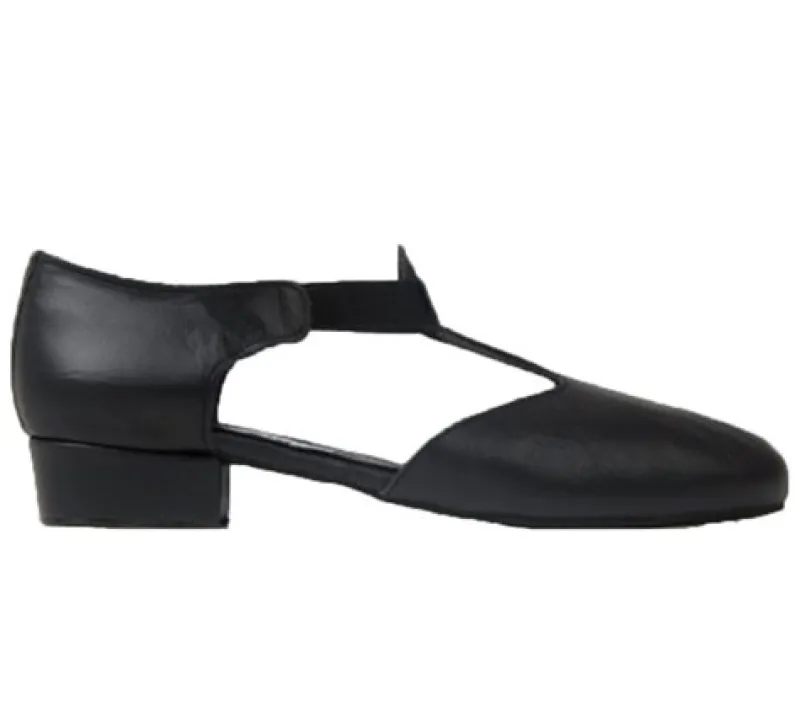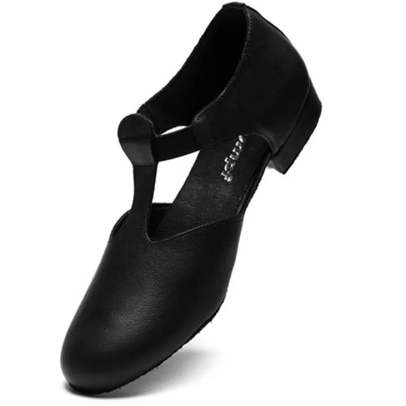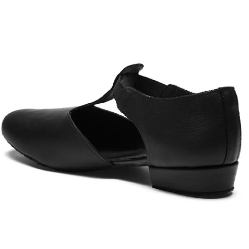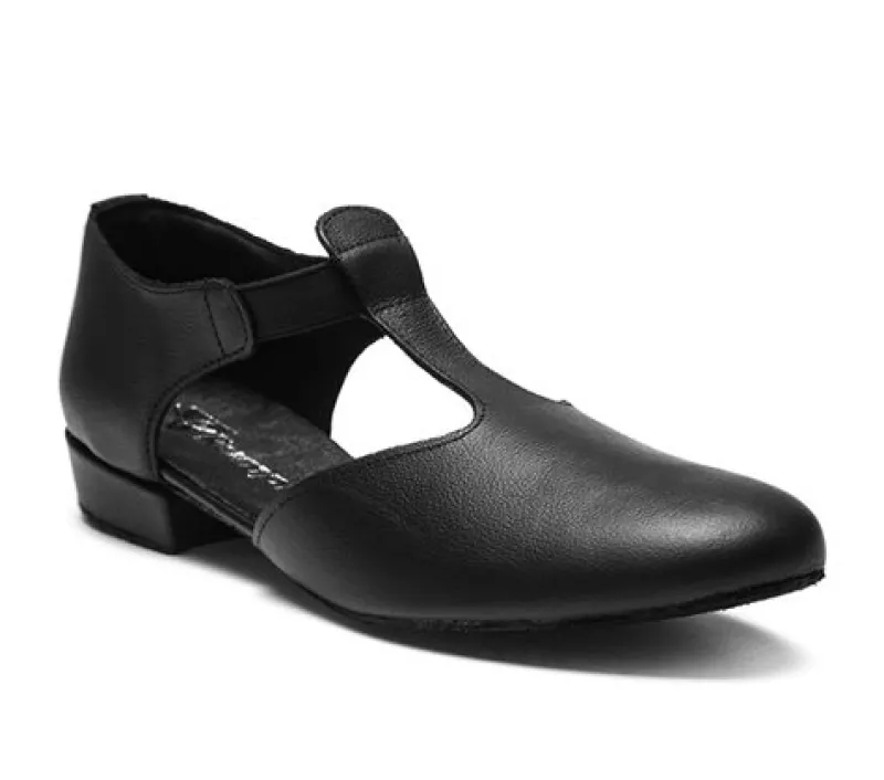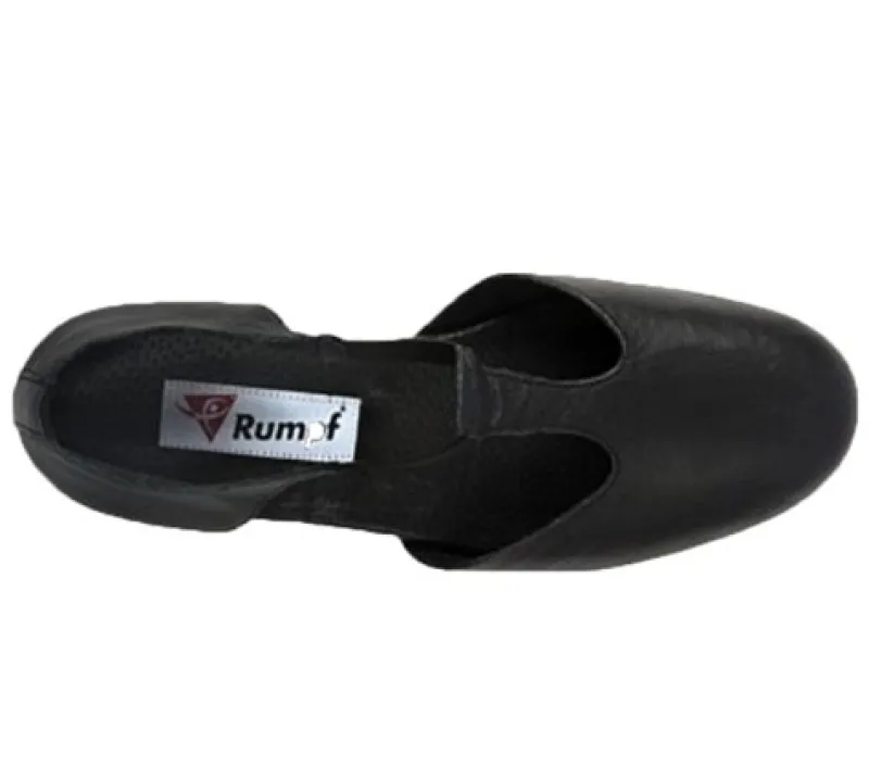 Rumpf trænings dansesko 1312 i blødt sort skind med spaltsåler. Hælhøjde 2 cmT-rem og elastik gør at danseskoen si…