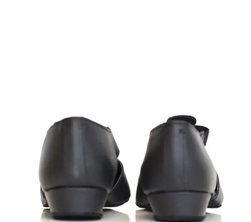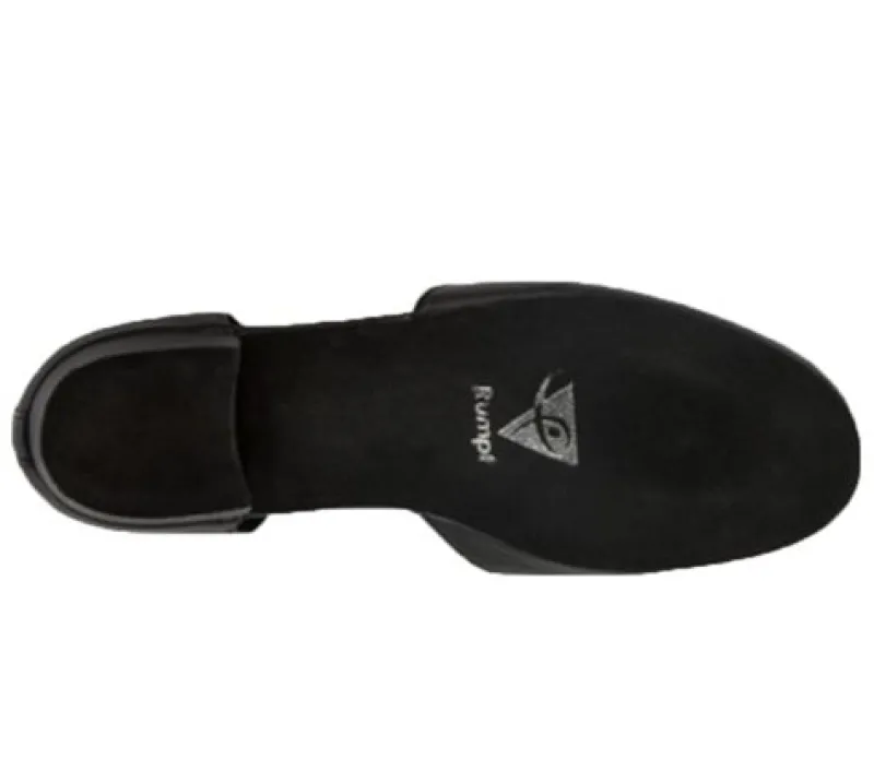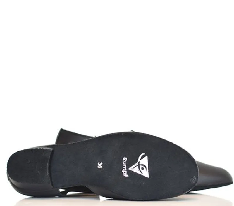 Rumpf trænings dansesko 1312 i blødt sort skind med spaltsåler. Hælhøjde 2 cm