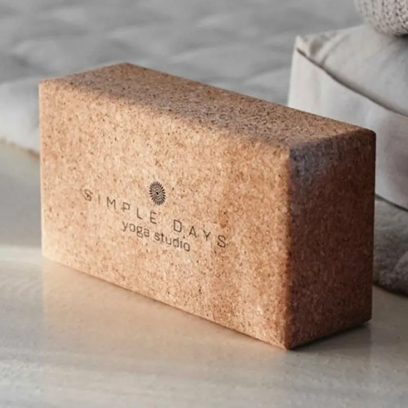 Simple Days YOGA korkblok i natur farve med Simple Days logo. 22×12 cmDejlig yoga blok fremstillet af det bæredygtige m…