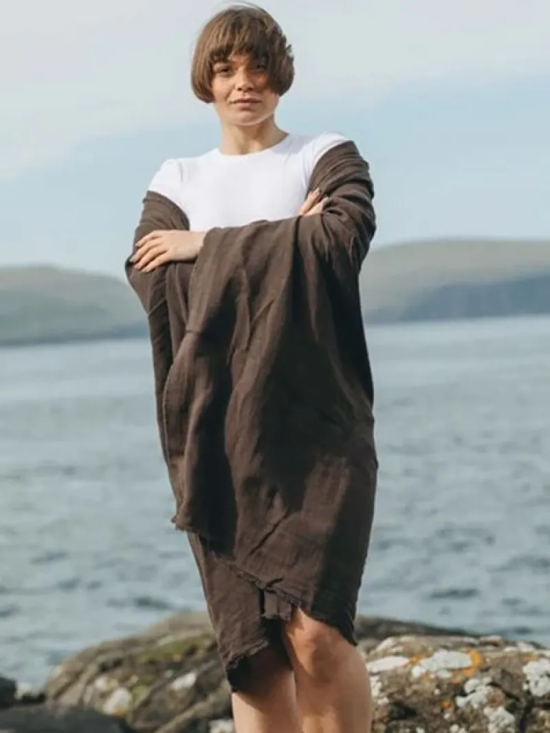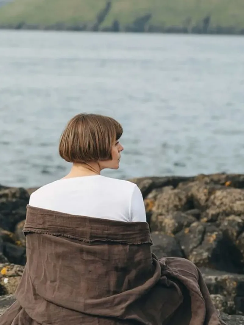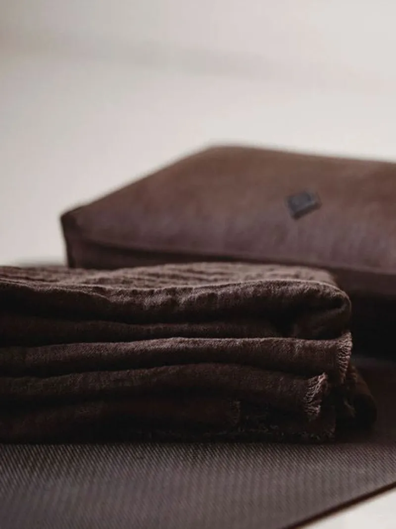 Det mørkebrune yogasjal fra Simple Days er et alsidigt tæppe eller sjal, der er perfekt til mange formål. Lavet af naturlige materialer, en blanding af bomuld og hør, er dette yogasjal blødt og lækkert at have på. Det er ideelt til hyggestunder, til at lune sig med eller til før og efter yoga eller meditation. Sjalet er gennemfarvet og har små frynser langs kanten.
