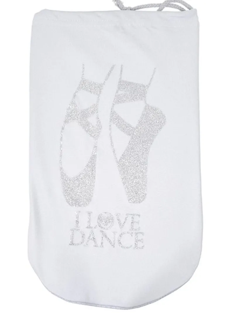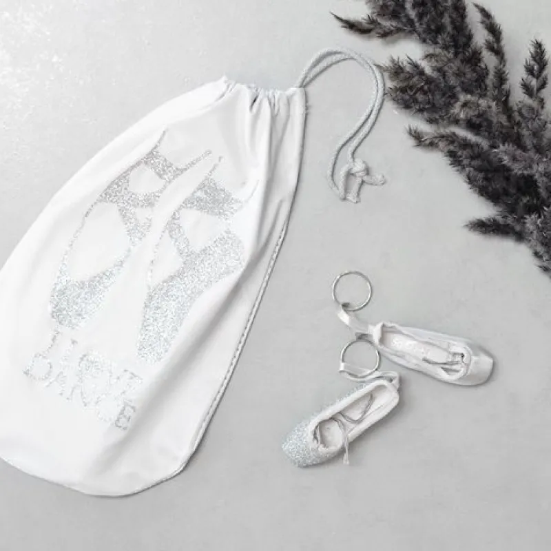 Dansebutikken Sko pose til balletsko med sølv print og hvid net> Andet Til Ballet | Balletsko Tilbehør