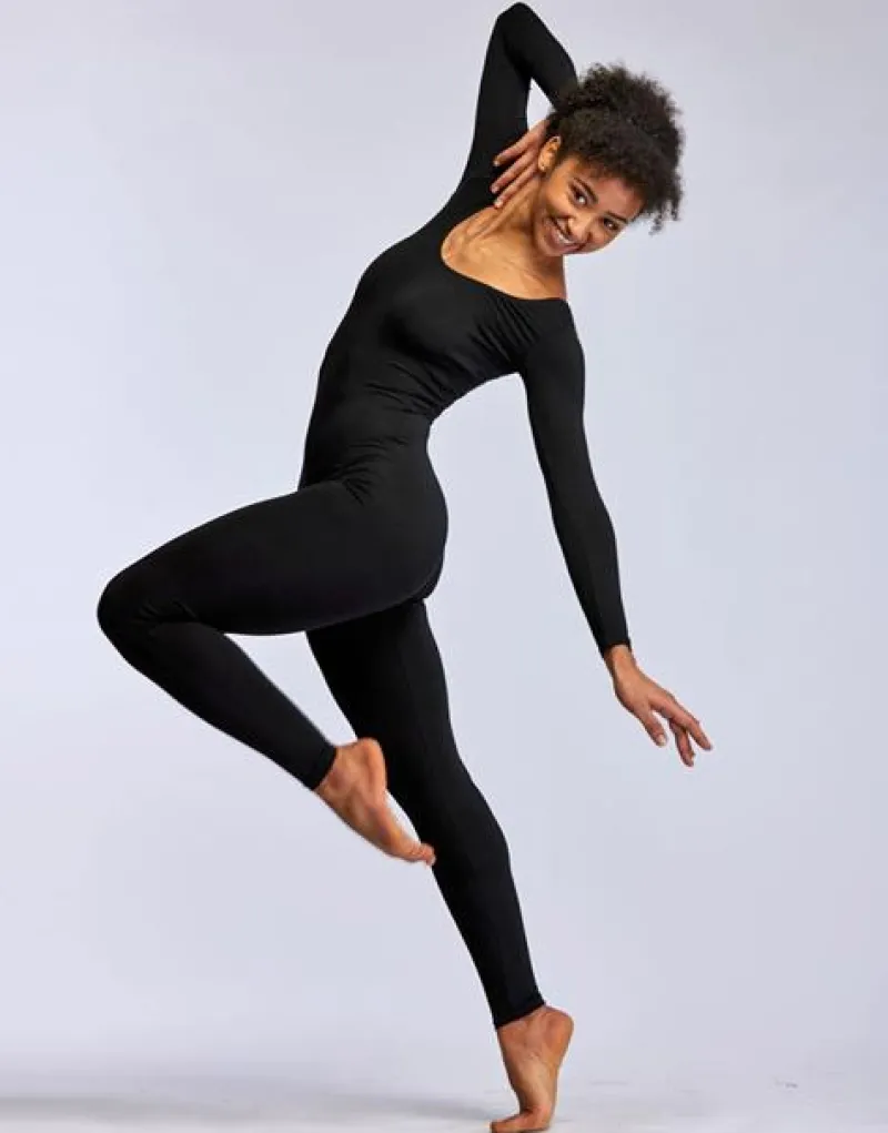 Dansebutikken Sort heldragt med lange ærmer Tempsdanse>Dame Pilates Heldragter | Heldragter Til Yoga