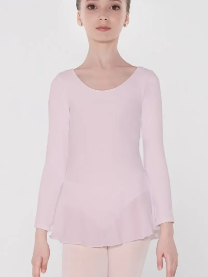 Elegant dragt med påsyet skørt og lange ærmer fra Wear Moi i lyserød. 90% poliamid/10% elastan.Den er designet speci…