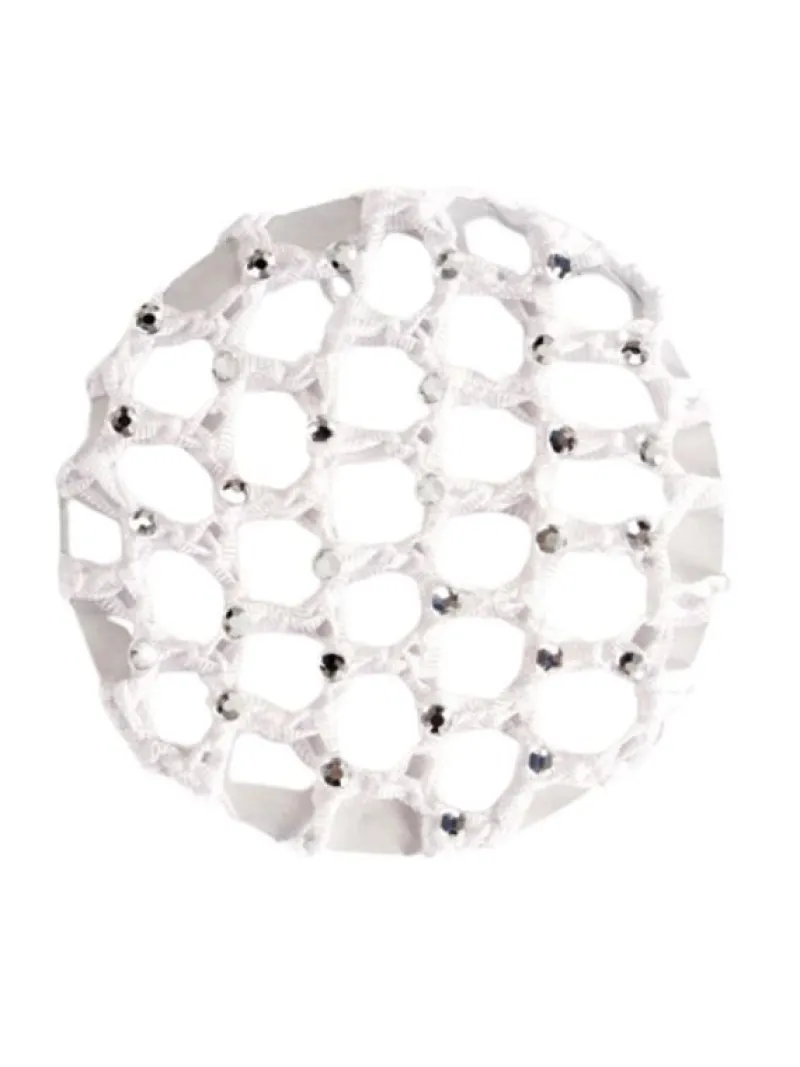 Dansebutikken Wear Moi hårnet i hæklet hvid strik med flotte sten> Gymnastik Hårtilbehør | Hårtilbehør Til Ballet